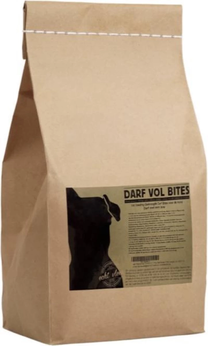 Per kilo bites hebben we 3200 gram vers vlees verwerkt. Door het gebruik van verse grondstoffen, kokosolie en krill heeft Vol een lekkere geur en een relatief korte houdbaarheid van 1 jaar. Doordat er zoveel vlees in de brokken zit, zijn deze zachter dan reguliere brokken. Je kunt de bites eventueel oplossen in water om zo een soort diner voor je hond te maken.