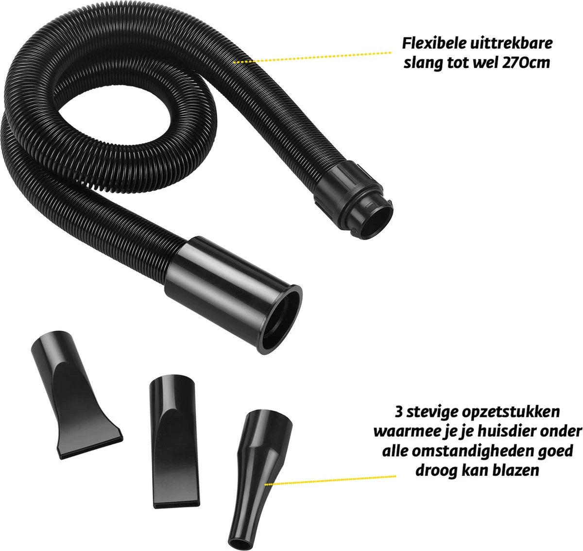 - Flexibele uittrekbare blaasslang tot een lengte van 270cm.