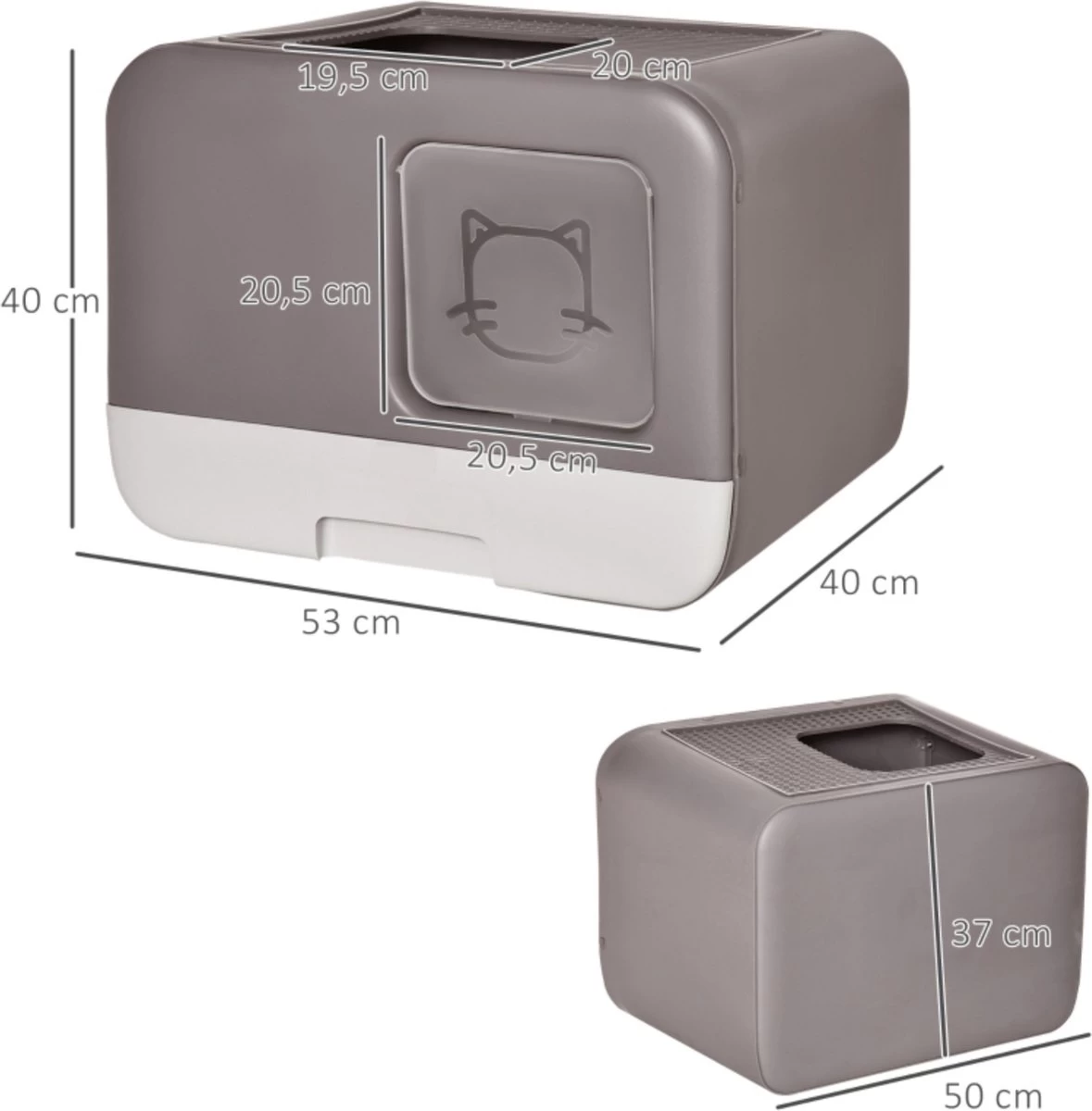 Deze moderne, praktische kattenbak geeft je katten volledige privacy en zorgt ervoor dat ze niet gestoord wordt als ze hem nodig heeft. Het kattentoilet wordt geleverd met een schepopzetstuk om verlies van de schep te voorkomen en het schoonmaken te vergemakkelijken.