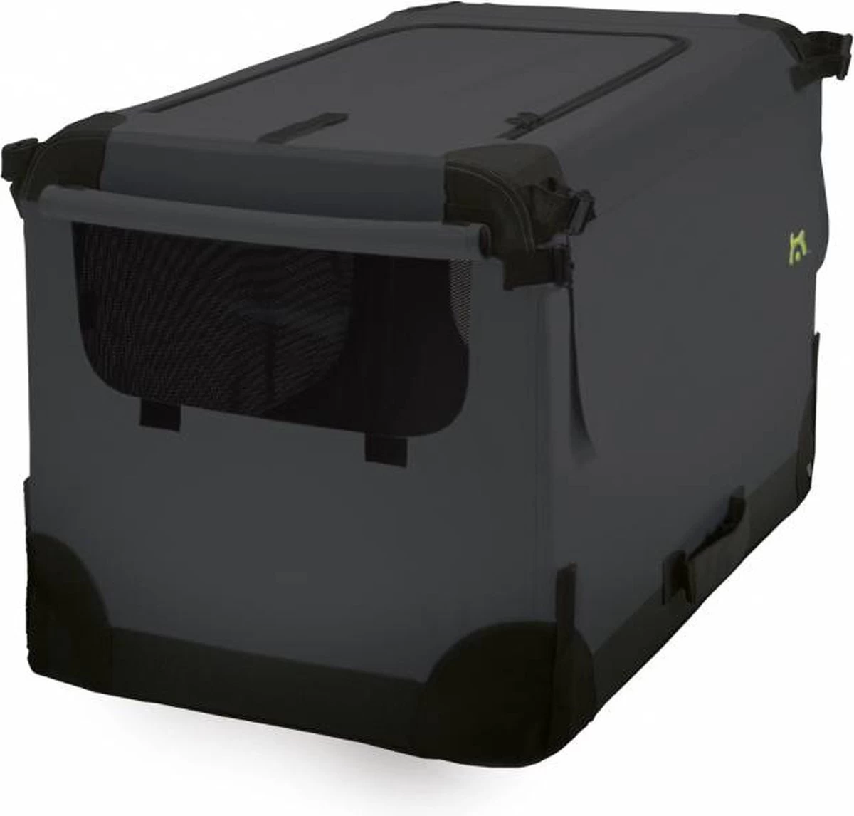 Het stalen zwarte frame van de Maelson Soft Kennel zorgt voor extra bescherming voor jouw hond en het EZ-Fold systeem voorkomt dat de kennel ongewenst in elkaar vouwt. De te verwijderen zachte buitenhoes is gemaakt van 600D nylon stof afgewerkt aan de hoeken met 900D nylon stof