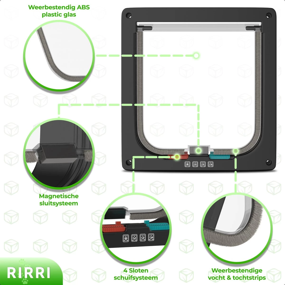 De kwalitatieve materialen van dit kattenluik zorgen ervoor dat deze jaren meegaat. Niet alleen Houd je zo ongewenste dieren buiten de deur, ook neem je afscheid van vervelende tocht. De magnetische sluiting zorgt er zelfs voor dat het deurtje altijd op zijn plaats blijft. Zo maakt wind en tocht geen enkele kans meer.