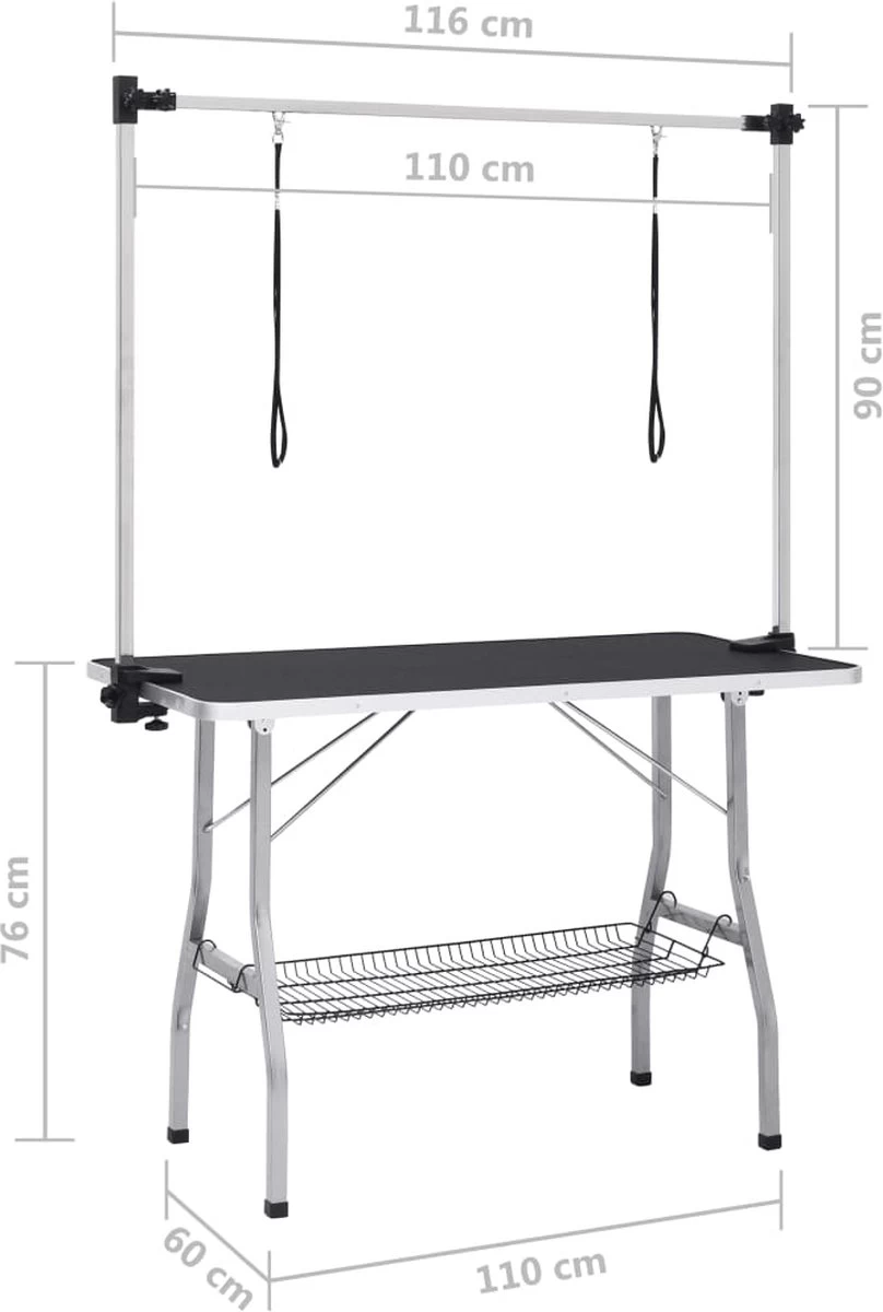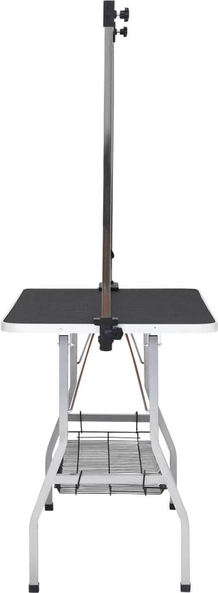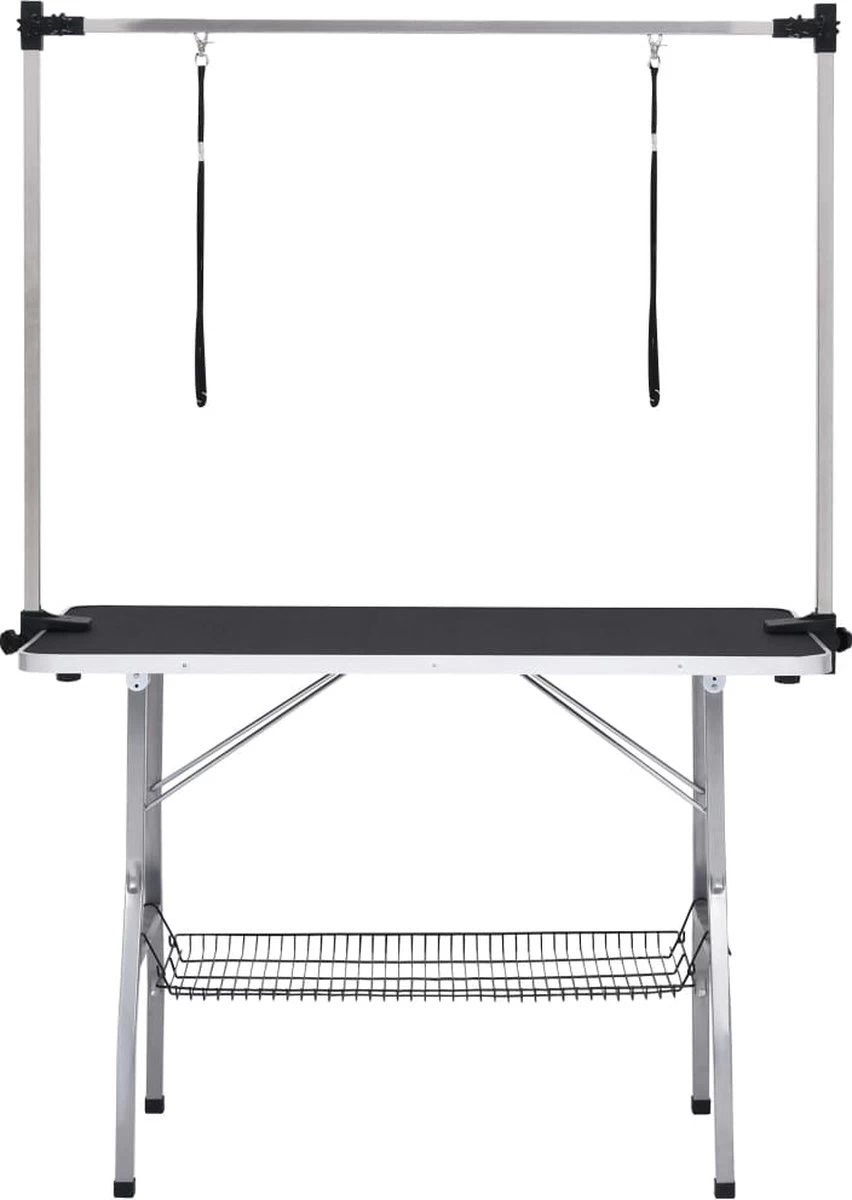Scherpere prijzen op https://www.ni-vi.com De trimtafel voor honden is een goede keuze om je lieve huisdieren het hoogste comfort te bieden tijdens het trimmen. Deze trimtafel voor huisdieren wordt ondersteund door stalen poten. waardoor hij stabiel en stevig staat. Dankzij het grote anti-sliptafelblad staan je huisdieren op een comfortabel oppervlak. De roestvrijstalen trimarm is in hoogte verstelbaar. Je kunt de hoogte dus perfect aanpassen aan jezelf en je huisdier. De tafel is inklapbaar en daardoor makkelijk op te bergen. wat ideaal is voor mobiele dierentrimmers en thuisgebruik. Onder het tafelblad bevindt zich een schap voor het opbergen van huisdierbenodigdheden. De afgeronde tafelhoeken voorkomen blessures.