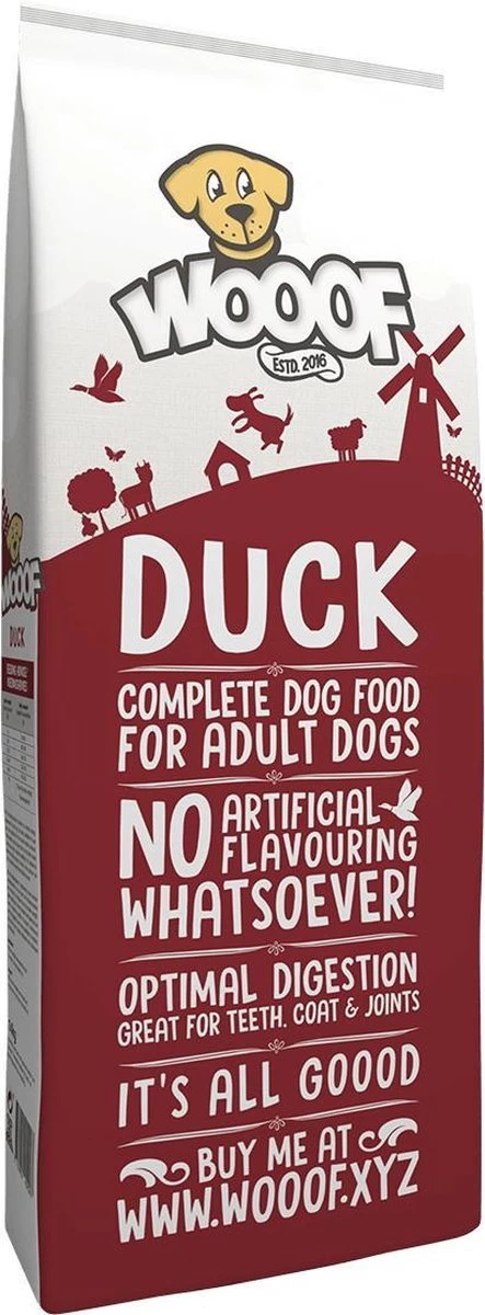 WOOOF eend hypoallergeen is zeer geschikt voor honden met een allergie voor bepaalde dierlijke eiwitbronnen.Het begint allemaal met natuurlijke ingrediënten. Natuurlijk. Je wilt precies weten wat je hond eet. Echte en herkenbare ingrediënten die je kent en vertrouwt. Ook kijk je naar vitaminen en mineralen. Wij selecteren zorgvuldig alle ingrediënten voor WOOOF geperst hondenvoer.